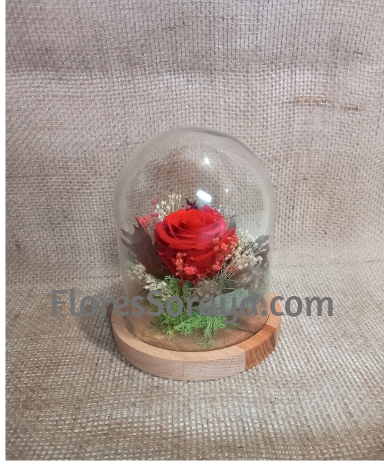 La Cúpula Bella de nuestra floristería online, es una rosa pensada para durar para siempre, por eso se la llama también la rosa eterna. Las Rosas preservadas son rosas naturales, que se han sometido a un proceso químico, por lo que estas rosas naturales quedan totalmente paradas en el tiempo, no se estropean, ni marchitan, ni se secan. Es el regalo de San Valentín perfecto y también es el regalo perfecto para regalar cualquier día para mostrar nuestro amor o cariño hacía una persona amada o querida. Como el amor, perdurará esta Rosa eterna en el tiempo.